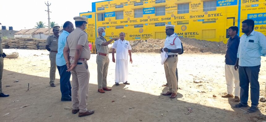 கடந்த சில மாதங்களாக புதிய மேம்பாலம் கட்டும் பணி நடைபெற்று வருகிறது. அருகில் கோவை முதல் சென்னை வரை செல்லும் ரயில்கள் பாதை உள்ளதால் அப்பகுதியில் போக்குவரத்திற்கு இடையூறு இல்லாமல் இரண்டு ‘நான்கு’ கனரக வாகனங்கள் செல்லும் சாலைகளை ஆய்வுப் பணிகள் நடைபெற்றது. பொதுமக்கள் செல்லும் சாலைகளில் இடையூறு இல்லாமல் செல்ல காவல்துறை அதிகாரிகளுக்கு உத்தரவிட்டார்.
