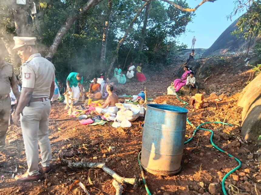 இதை அடுத்து இன்று 10ஆம் தேதி இந்த நிகழ்ச்சி நடத்த போலிஸ் அனுமதி வழங்கியது. இதையடுத்து அந்த இடத்தில் இன்று காலை கோவில் நிர்வாகிகள் மற்றும் ஊர் பொதுமக்கள் இணைந்து மயிலாடும்பாறையில் கோயிலில் சென்று பூஜைகள் நடத்தினர். கூட்டாலுமூடு கோவில் மேல்சாந்தி தலைமையில் பூஜைகள் நடைபெற்றன. தொடர்ந்து பக்தர்கள் பஜனையும் நடத்தினர்.