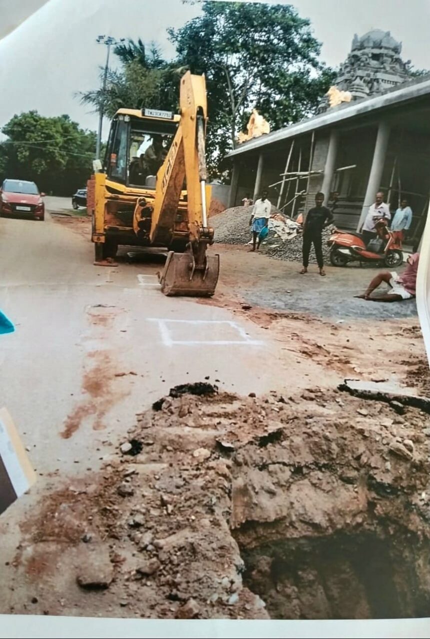 வேலூர் அரியூர் வசந்தம் நகர் அருகே சிவன் கோயில் அமைந்துள்ளது. இந்தக் கோயில் நிர்வாகி உரிமையாளர் மணி என்பவர் பொதுமக்கள் போக வர செல்லும் 40 அடி சாலையை ஆக்கிரமிப்பு செய்து கொண்டு குறுக்கே கோயில் காம்பவுண்ட் கட்டுவதற்காக ஜேசிபி எந்திரம் மூலம் பள்ளம் தோண்டி ஆக்கிரமிப்பு செய்து வருகிறார். இது குறித்து அப்பகுதி ஊர்ப் பொது மக்கள் அனைவரும் சேர்ந்து வேலூர் மாவட்ட ஆட்சியரிடம் மனுவாக எழுதி கொடுத்துள்ளார்கள். மனுவைப் பெற்றுக் கொண்ட ஆட்சியர் அவர்கள் சம்பந்தப்பட்ட அதிகாரிகளிடம் பேசி முறையான நடவடிக்கை எடுக்கக் கூறுகிறேன் என்று கூறினார்.