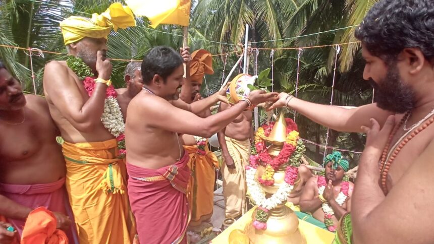 கிருஷ்ணகிரி மாவட்டம் போச்சம்பள்ளி அருகே உள்ள அகரம் அடுத்த ஏ. மோட்டூர் கிராமத்தில் இன்று காலை ஸ்ரீ மகா கணபதி மற்றும் மாரியம்மன் கோவில் கும்பாபிஷேக விழா நடைபெற்றது. முன்னதாக காலை கணபதி பூஜையுடன் வேள்வி பூஜை தொடங்கியது. இதில் யாகசாலையில் கலசஸ்தாபனம், மூல மந்திர ஹோமம் பூர்ணஹுதி, உபச்சார ராகதாள வழிபாடு நடத்தப்பட்டது.