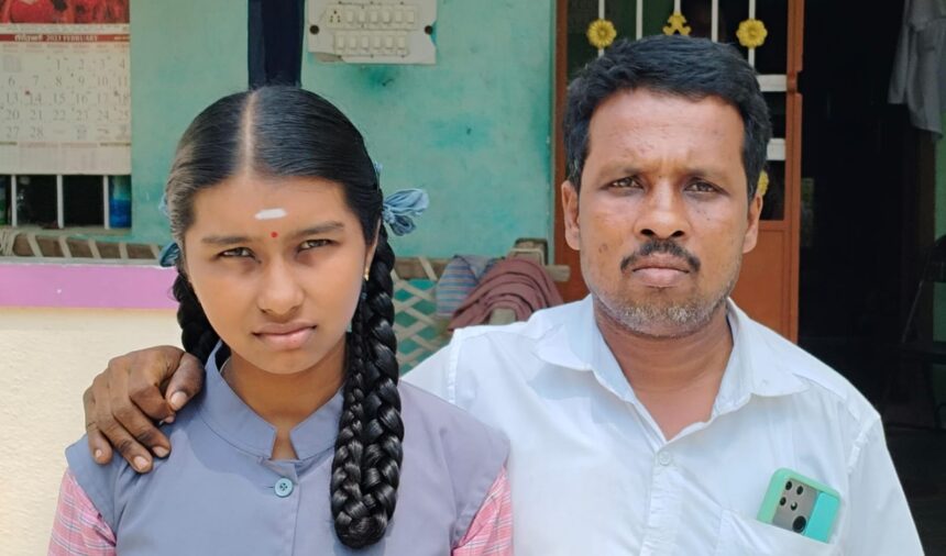 போச்சம்பள்ளி அருகே தாயை இழந்து தந்தையின் வளர்ப்பில் அகரம் அரசு பள்ளியில் முதலிடம் முதலிடம் பிடித்த மாணவி ஹரிஷா