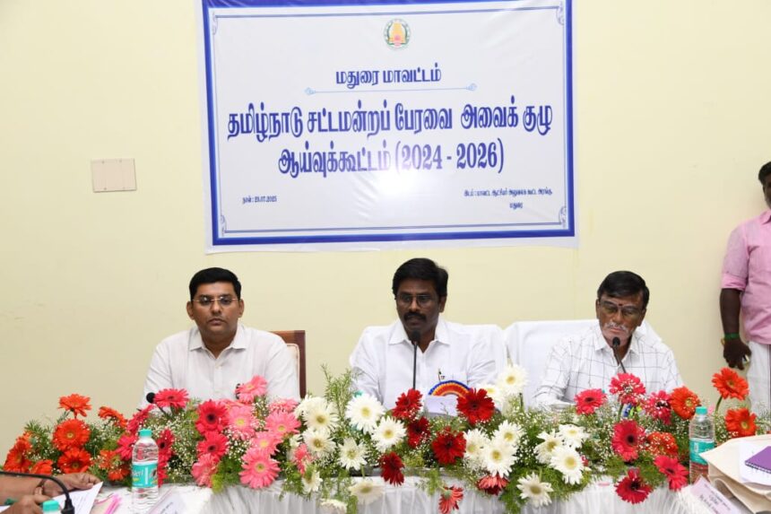 மதுரை மாவட்ட ஆட்சியர் அலுவலக கூட்டரங்கில் தமிழ்நாடு சட்டமன்றப் பேரவை 2024-2026-ம் ஆண்டிற்கான சட்டப்பேரவை அவைக் குழுத் தலைவர் இ. பரந்தாமன் (எழும்பூர் சட்டமன்ற உறுப்பினர்) மற்றும் மதுரை மாவட்ட ஆட்சித் தலைவர் கே.ஜே. பிரவீன் குமார்,