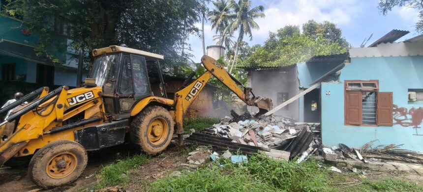 அதனடிப்படையில் வீடுகளை வருவாய் துறை அதிகாரிகள், உதவி பொறியாளர் ராஜேஸ், கிள்ளியூர் மண்டல துணை வட்டாச்சியர் எட்வர்ட் ராஜ சேகர், மிடாலம் வருவாய் ஆய்வாளர் பிரபுதாஸ் ஆகியோர் ஆலோசனையின் பேரில், மத்திகோடு கிராம நிர்வாக அலுவலர் தீபநிலா, நீர்வளத்துறை அதிகாரிகள், காவல்துறை உதவியுடன் ஜோசிபி இயந்திரம் மூலம் இடித்தனர்.