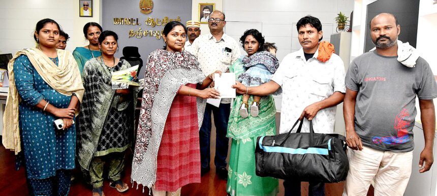 தஞ்சாவூரில் மனநலம் பாதிக்கப்பட்ட பீகார் மாநில பெண் 8 மாதங்களுக்குப் பிறகு கணவனிடம் ஒப்படைக்கப்பட்டார். அவருக்கு இனிப்புகள் வழங்கி மாவட்ட கலெக்டர் பிரியங்கா பங்கஜம் வழியனுப்பி வைத்தார். தஞ்சாவூர் மாவட்டம் பாபநாசம் ரயில் நிலையம் அருகே கடந்த ஆண்டு அக்டோபர் 29-ம் தேதி மன நலம் பாதிக்கப்பட்ட 30 வயதான ஒரு பெண் குழந்தையுடன் மீட்கப்பட்டார். அவரை தஞ்சாவூர் ராசா மிராசுதாரர் அரசு மருத்துவமனையில் இயங்கி வரும் மனநலம் பாதிக்கப்பட்டோருக்கான அவசர மற்றும் சிகிச்சை மையத்தில் சிகிச்சைக்காக சேர்த்தனர். அங்கு அந்த பெண் கடந்த 8 மாதங்களாக சிகிச்சை பெற்று வந்தார். இந்தப் பெண்ணுக்கு மாவட்ட மனநல மருத்துவர் சித்ராதேவி பரிந்துரையின் பேரில் சிகிச்சை அளிக்கப்பட்டு வந்தது. ஆரம்பத்தில் மருத்துவர்கள் மற்றும் பணியாளர்களுக்கு ஒத்துழைக்காமல் இருந்த அந்தப் பெண் நாளடைவில் குணமடைந்து வந்த நிலையில் தனது கணவன் மற்றும் ஊர் பெயரை மருத்துவர்களிடம் இந்தியில் தெரிவித்துள்ளார். ஹிந்தி மொழி பேசத் தெரிந்த ஒருவர் மூலம் அந்த பெண்ணிடம் பேசி தகவல்களை செட் இந்தியா நிர்வாகிகள் சேகரித்தனர்.