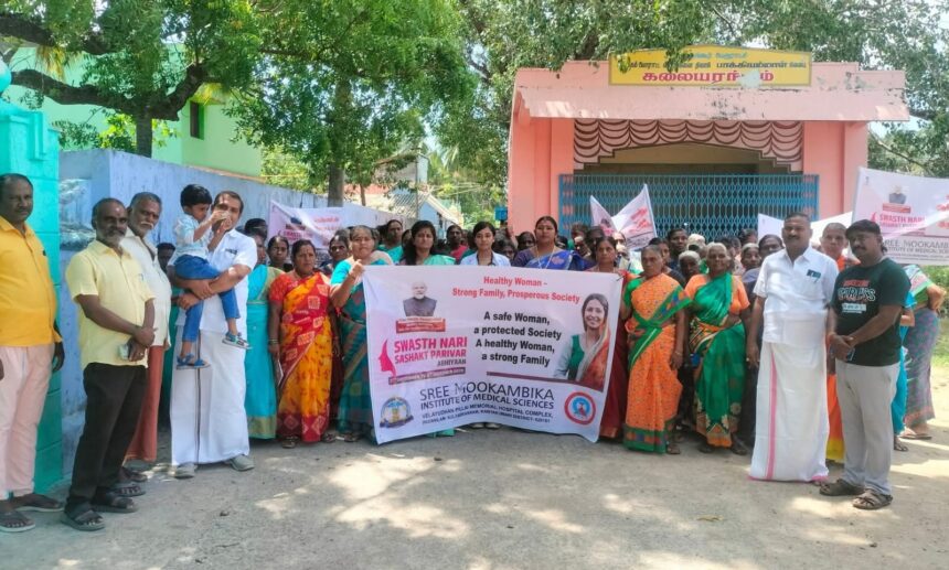 மத்திய அரசின் ஸ்வஸத் நரி சஹாக்த் பரிவார் அபியான் நிகழ்ச்சியை முன்னிட்டு மருங்கூர் பேரூராட்சி மற்றும் குலசேகரம் ஸ்ரீ முகாம்பிகா மருத்துவக் கல்லூரி மருத்துவமனை இணைந்து ஆரோக்கியமான பெண்கள், வலுவான குடும்பம், வளமான சமூகம் அமைய நடைபெற்ற விழிப்புணர்வு முகாம் மற்றும் பேரணியினை சென்னை குழந்தைகள் நல சிறப்பு மருத்துவர் டாக்டர் தம்பரசி தொடங்கி வைத்து சிறப்புரையாற்றினார்.