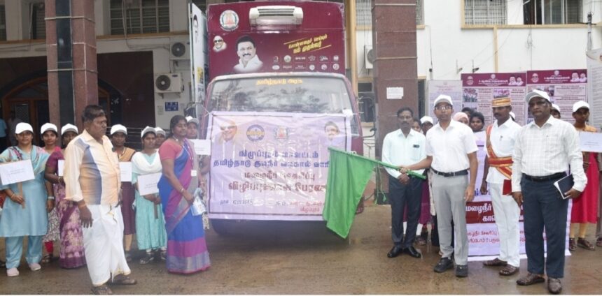 மழைநீர் சேகரிப்பின் அதிநவீன மின்னணு திரை விழிப்புணர்வு வாகனத்தினை விழுப்புரம் மாவட்ட ஆட்சித்தலைவர் கொடியசைத்து துவக்கி வைத்தார்