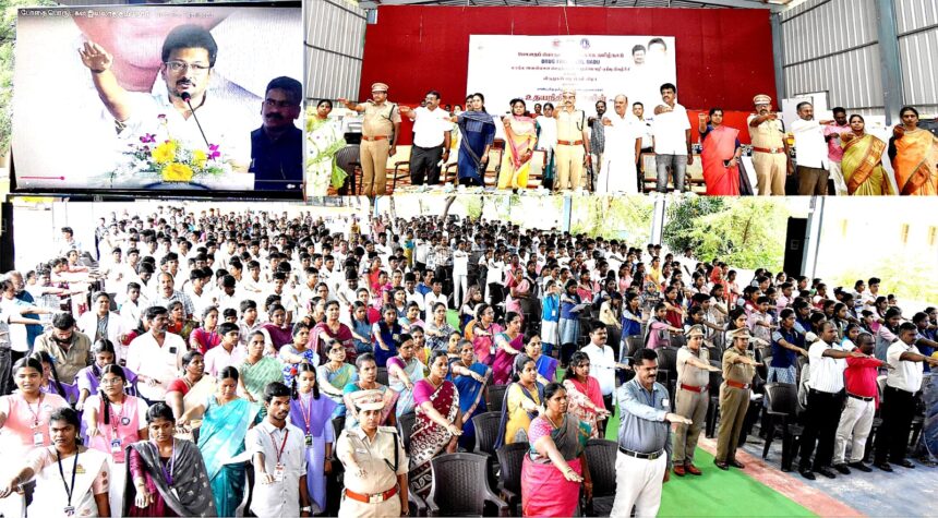 சென்னையில் இருந்து காணொலி காட்சி மூலம் மாநில அளவிலான போதை பொருள்கள் இல்லாத தமிழ்நாடு என்னும் உறுதிமொழி ஏற்பு நிகழ்ச்சி தஞ்சாவூரில் நடைபெற்றது.