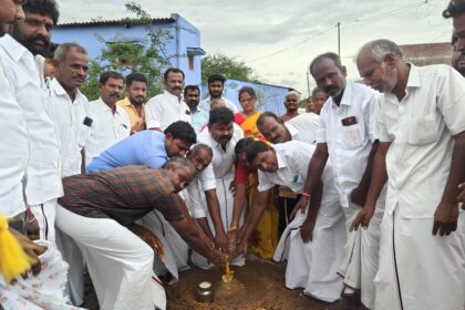 நியாய விலை கடை கட்டுவதற்கு எம்எல்ஏ ராஜா அடிக்கல் போட்டு துவக்கி வைத்தார்