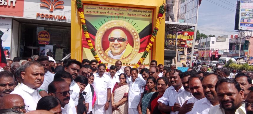 இதை தொடர்ந்து திராவிட முன்னேற்ற கழகத்தின் மாவட்ட கட்சி அலுவலகத்தில் உள்ள கலைஞரின் திரு உருவப்படத்திற்கு மலர் தூவி மரியாதை செய்தனர். இதில் கிழக்கு மாவட்ட பொறுப்பாளர் ஆ. மணி எம்பி, நகர மன்ற தலைவி லட்சுமி நாட்டான் மாது, நகரக் கழகச் செயலாளர் நாட்டான் மாது, மாவட்ட பொருளாளர் தங்கமணி மற்றும் மாவட்ட, நகர, ஒன்றிய, பேரூர், கிளை கழக நிர்வாகிகள், தொண்டர்கள் திரளாக கலந்து கொண்டனர்.