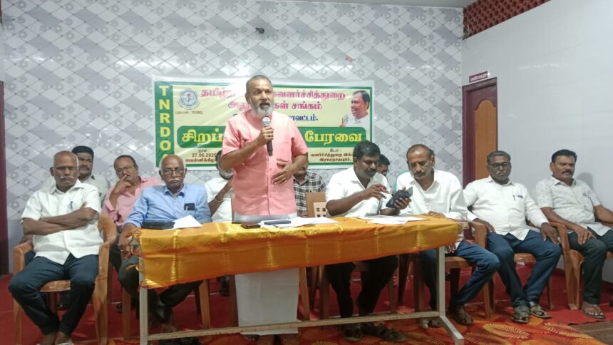 ராமநாதபுரத்தில் தமிழ்நாடு ஊரக வளர்ச்சித் துறை அலுவலர்கள் சங்கம் சிறப்பு மாவட்ட பேரவை நடைபெற்றது. ராமநாதபுரம் ஊரக வளர்ச்சித்துறை மகாலில் நடைபெற்ற தமிழ்நாடு ஊரக வளர்ச்சித்துறை அலுவலர்கள் சங்க சிறப்பு மாவட்ட பேரவைக்கு மாவட்ட தலைவர் விஜயகுமார் தலைமை வகித்தார். மாவட்ட இணை செயலாளர் மன்சூர் வரவேற்புரை ஆற்றினார். பேரவை கூட்டத்தில் மாநிலத் தலைவர் ரமேஷ் துவக்க உரை ஆற்றினார். முன்னாள் மாநிலத் தலைவர் சுப்பிரமணியன் அமெரிக்காவில் இருந்து காணொளி காட்சி வாயிலாக வாழ்த்துரை வழங்கினார். மாநில பொதுச் செயலாளர் ராஜசேகரன் முன்னாள் மாவட்ட தலைவர் ராஜேந்திரன் உட்பட பலர் வாழ்த்துரை வழங்கினர். மாவட்டத் துணைத் தலைவர் சுபாஷ் சந்திர போஸ் அஞ்சலி தீர்மானம் வாசித்தார். மாவட்டத் தணிக்கையாளர் திருமுருகன் சங்க செயலறிக்கை வாசித்தார். மாவட்ட பொருளாளர் ராமநாதன் வரவு செலவு அறிக்கை சமர்ப்பித்தார். மாநில செயற்குழு உறுப்பினர் ஜெயமுருகன், மாவட்டத் துணைத் தலைவர்கள் முனியராஜ், முடியப்பதாஸ், மாவட்ட இணை செயலாளர் ஜீவா, மாவட்ட துணைத் தலைவர் அருண்குமார், மாவட்ட தணிக்கையாளர் தேவி உள்ளிட்ட மாவட்ட நிர்வாகிகள் கலந்து கொண்டு தீர்மானங்களை முன்மொழிந்தனர். பேரவை கூட்டத்தில் நிர்வாகிகள் தேர்வு நடைபெற்றது. மாநில துணைத்தலைவர் நிறைவுரை ஆற்றினார். சரவணகுமார் நன்றி கூறினார்.