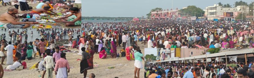 ராமநாதபுரம் மாவட்டம் ராமேஸ்வரம் ராமநாதசுவாமி திருக்கோவில் இந்துக்களின் தீர்த்த மூர்த்தி புனித ஸ்தலமாக விளங்கி வருகின்றது. இந்த திருக்கோவிலில் நம்மோடு வாழ்ந்து மறைந்த முன்னோர்களுக்கு ஆடி அமாவாசை, தை அமாவாசை, மஹாளய அமாவாசை போன்ற காலங்களில் அக்னி தீர்த்த கடற்கரையில் புனித நீராடி திதி கொடுத்து வழிபாடு நடத்தினால் பாவ விமோச்சனம் அடைவார்கள் என்பது ஐதீகம். இதனால் இந்த கோவிலில் தம்மோடு வாழ்ந்து மறைந்த முன்னோர்களுக்கு திதி கொடுத்து வழிபாடு நடத்துவதற்கு தமிழகத்தில் பல்வேறு மாவட்டங்களில் இருந்து லட்சத்திற்கும் மேற்பட்ட பக்தர்கள் நள்ளிரவு முதலே ராமேஸ்வரத்தில் குவிந்தனர்.