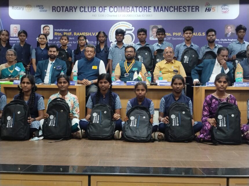 ரோட்டரி கிளப் ஆப் கோயம்புத்தூர் மான்செஸ்டர் புதிய நிர்வாகிகள் பதவியேற்பு விழா கோவை ஆவாரம் பாளையத்தில் உள்ள கோ-இந்தியா அரங்கில் நடைபெற்றது. இதில் 2025-2026 ம் ஆண்டிற்கான புதிய தலைவராக வி.ஆர். ரமேஷ், செயலாளராக ஜி.எஸ். சுரேஷ், துணைத் தலைவராக கண்ணன், தேர்ந்தெடுக்கப்பட்ட தலைவராக கணேஷ்குமார், உடனடி முன்னாள் தலைவராக ரகுராமன், பொருளாளராக எம்.டி. செந்தில் ராஜகோபால், சங்க நிர்வாகம் அருள் குமரன், சமூக சேவை இயக்குனராக பிரதீப் கோபால், தொழில்சார் சேவை இயக்குனராக ரம்யா ஜோதி, இளைஞர் சேவை இயக்குனராக விவேக் கனகராஜ், சர்வதேச சேவை இயக்குனராக சசிகுமார் ஆகியோர் பதவி ஏற்று கொண்டனர்.