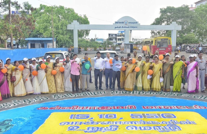 தேர்தல் நடைபெறும் நாளான 23.04.2026 அன்று வரை “தேர்தல் திருவிழா தேசத்தின் பெருவிழா” என்பதை வலியுறுத்தி மகளிர் சுயஉதவிக்குழு உறுப்பினர்கள் ரங்கோலி வாயிலாக விழிப்புணர்வு ஏற்படுத்தி வருகின்றனர்.