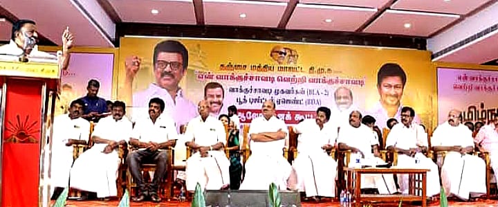 அவர் முன்னாள் மத்திய இணை அமைச்சர் எஸ்.எஸ். பழனி மாணிக்கம், மக்களவை உறுப்பினர் முரசொலி, எம்எல்ஏக்கள் துரை சந்திரசேகரன், டி.கே.ஜி. நீலமேகம், மேயர் சண்.ராமநாதன்,மாவட்ட செயலாளர்கள் அன்பழகன், எம்எல்ஏ பழனிவேலு, ஒரத்தநாடு தொகுதி பார்வையாளர் கார்த்திகேயன், திருவையாறு தொகுதி பார்வையாளர் மனோகரன், துணை மேயர் அஞ்சுகம் பூபதி, மாவட்ட பொருளாளர் எல்ஜி அண்ணா மகேஷ் கிருஷ்ணசாமி, து. செல்வம் உட்பட பலர் கலந்து கொண்டனர்.