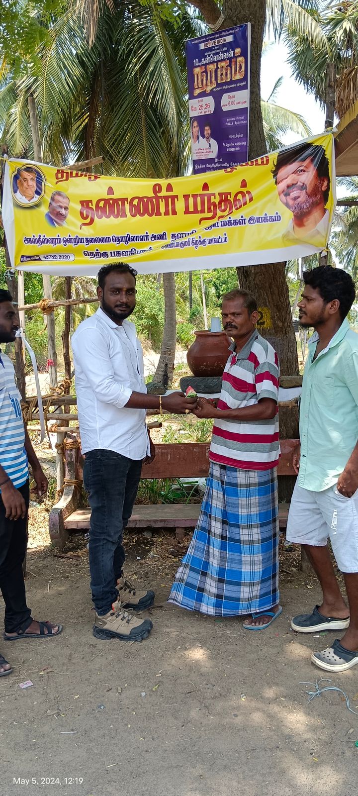 மாநில பொதுச் செயலாளர் புஸ்ஸி ஆனந்த், வாழ்த்துக்களோடு குமரி மாவட்ட பொறுப்பாளர் மற்றும் கிழக்கு மாவட்ட தலைவர் சிவா, வாழ்துகளோடு ஒருகிணைப்பாளர் ஜில்லா ராஜேஷ், தலைமையில் மாவட்டதொழிலாளர்அணி தலைவர் யோகானந்த, ஆலோசனையில் அகஸ்தீஸ்வரம் ஒன்றிய தொழிலாளர் அணி தலைவர் ஆனந்த் மற்றும் ஒன்றிய நிர்வாகிகளின் ஏற்பாட்டில் வெப்பத்தை தணிக்கும் வகையில் அழகப்பபுரம் 5வது வார்டில் தண்ணிர் பந்தல் திறக்கப்பட்டது. இங்கு 24 மணி நேரமும் தண்ணீர் பந்தலில் தண்ணீர், மோர் ஆகியவை இருக்கும் எனவும் இதை பொதுமக்கள் முறையாக பயன்படுத்திக் கொள்ள வேண்டும் என தமிழக வெற்றி கழகம் சார்பில் தெரிவிக்கப்பட்டது.