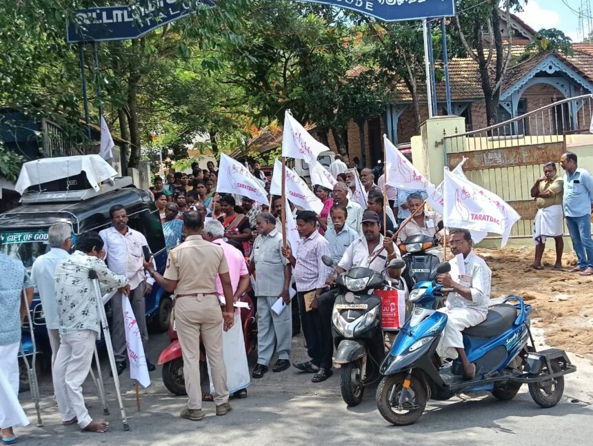மாற்றுத்திறனாளிகள் உள்ள குடும்பங்களை வறுமை கோட்டுக்கு கீழ் வகைப்படுத்தி குடும்பத்துக்கு மாதம் 35 கிலோ அரிசி கிடைப்பதை உறுதி செய்ய வேண்டும் என வலியுறுத்தி குழித்துறையில் உள்ள விளவங்கோடு தாலுகா அலுவலகம் முன்பு ஆர்ப்பாட்டம் நடைபெற்றது. தமிழ்நாடு அனைத்து வகை மாற்றுத்திறனாளிகள் மற்றும் பாதுகாப்பு உரிமைகளுக்கான சங்கத்தின் சார்பில் நடந்த போராட்டத்தில் சங்கத்தின் தலைவர் ஜெயானந்த் தலைமை வகித்தார். மாவட்ட செயலாளர் வில்சன், பொருளாளர் புரோஸ் கான் உட்பட ஏராளமானோர் பங்கேற்றனர். மாற்றுத்திறனாளிகள் கோரிக்கைகளை வலியுறுத்தி கோஷமிட்டனர்.