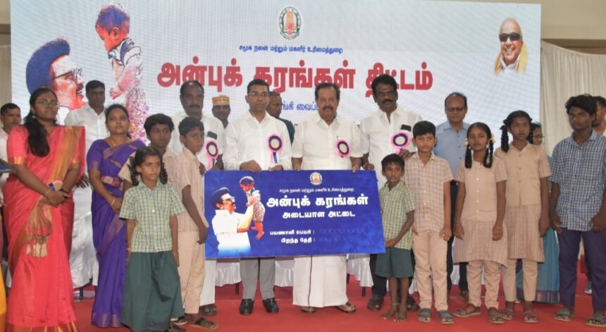 தமிழ்நாடு முதலமைச்சர் மு.க. ஸ்டாலின் சென்னை, கலைவாணர் அரங்கத்திலிருந்து காணொளி காட்சி வாயிலாக சமூக நலன் மற்றும் மகளிர் உரிமைத்துறை மூலம் குழந்தைகள் நலன் மற்றும் சிறப்பு சேவைகள் துறை சார்பில் “அன்புக் கரங்கள்” திட்டத்தினை தொடங்கி வைத்ததை தொடர்ந்து விழுப்புரம் தனியார் திருமண மண்டபத்தில், மாவட்ட ஆட்சித்தலைவர் ஷே. ஷேக் அப்துல் ரஹ்மான் தலைமையில் திருக்கோவிலூர் சட்டமன்ற உறுப்பினர் க. பொன்முடி விழுப்புரம் சட்டமன்ற உறுப்பினர் டாக்டர் இரா. இலட்சுமணன், மயிலம் சட்டமன்ற உறுப்பினர் ச. சிவக்குமார் ஆகியோர் “அன்புக் கரங்கள்” திட்டத்தினை குத்து விளக்கேற்றி துவக்கி வைத்தார்கள். உடன் மாவட்ட ஊராட்சி குழுத் தலைவர் ம. ஜெயசந்திரன், மாவட்ட ஊராட்சி குழு துணைத் தலைவர் திருமதி ஷீலா தேவி சேரன், மாவட்ட குழந்தைகள் பாதுகாப்பு அலுவலர் செல்வி பார்கவி உட்பட பலர் உள்ளனர்.