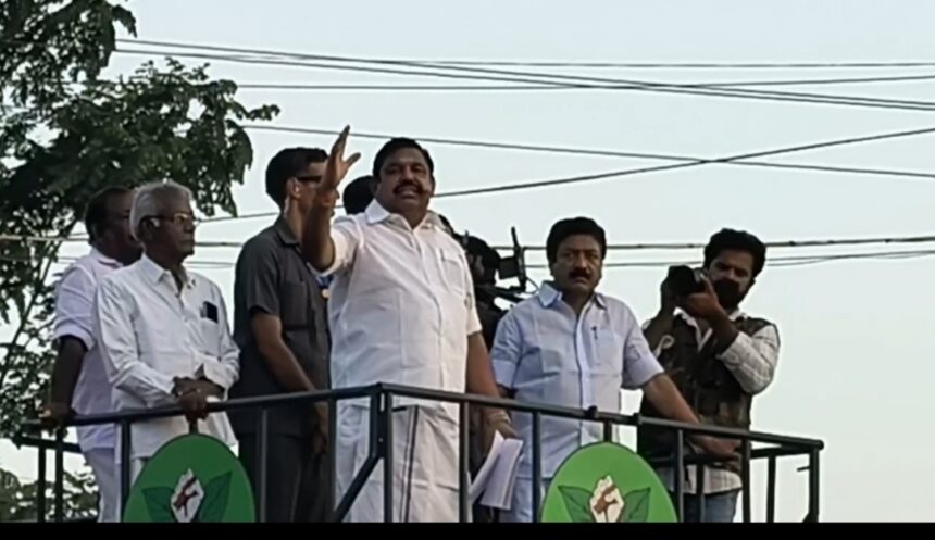 மக்களை காப்போம், தமிழகத்தை மீட்போம் என்ற தொனிப்பொருளில் அதிமுக பொதுச்செயலாளர் மற்றும் எதிர்க்கட்சித் தலைவர் எடப்பாடி கே. பழனிசாமி, விழுப்புரம் மாவட்டத்தில் இரண்டு நாள் மாபெரும் சுற்றுப்பயணத்தை மேற்கொண்டார். இந்நிலையில் விழுப்புரம் நான்கு முனை சந்திப்பில் நடைபெற்ற பொதுக்கூட்டத்தில் திரளான பொதுமக்கள் முன்னிலையில் அவர் உரையாற்றினார்.