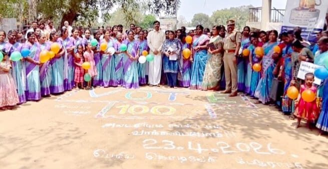 Reading: 100 சதவீதம் வாக்குப்பதிவை வலியுறுத்தி மேளதாளத்துடன் பாரம்பரிய உடை அணிந்து வீடு வீடாக சென்ற தேர்தல் அதிகாரிகள்
