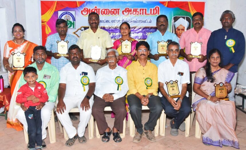 கல்லூரியில் நடந்த விழாவில் அன்னை அகாடமி சார்பில் 11-பேராசிரியர்களுக்கு சிறந்த பேராசான் விருது வழங்கப்பட்டது,