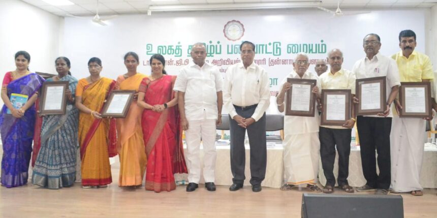 உலகத் தமிழ்ப் பண்பாட்டு மையத்தின் 11-ம் ஆண்டு தமிழ் அறிஞர்களுக்கான விருது வழங்கும் விழா மற்றும் நூல் வெளியீட்டு விழா என்.ஜி.பி கலையரங்கில் நடைபெற்றது.