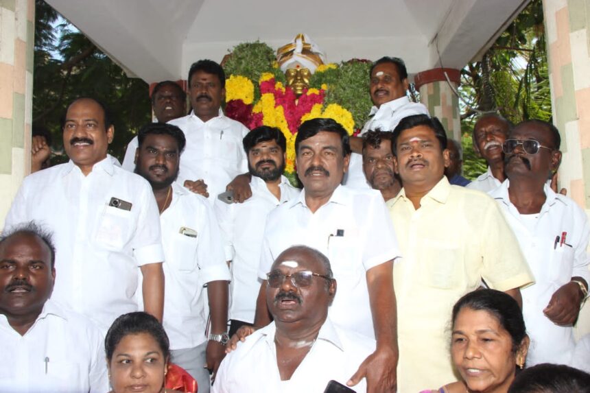 தூத்துக்குடியில் தமிழ்நாடு வ.உ.சி. பேரவை சார்பில் ஏற்பாடு செய்யப்பட்ட நிகழ்வில் தூத்துக்குடி தெற்கு மாவட்ட அதிமுக செயலாளரும் முன்னாள் அமைச்சருமான எஸ்.பி. சண்முகநாதன் பங்கேற்று ழுழ திருவுருவ சிலைக்கு மாலை அணிவித்து மரியாதை செலுத்தினார்.