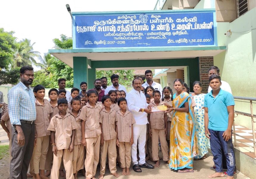 மயிலாடுதுறை பல்லவராயன்பேட்டை கிராமத்தில் நரிக்குறவர் சமுதாய மாணவ மாணவிகள் தங்கிப் பயிலும் சுபாஷ் சந்திரபோஸ் உண்டு உறைவிடப்பள்ளி உள்ளது. 90-க்கு மேற்பட்ட மாணவர்கள் பயிலும் இப்பள்ளியில் நரிக்குறவ மாணவர்கள் சுமார் 20 பேர் குத்துச்சண்டை பயிற்சி பெற்று வருகின்றனர். இந்த மாணவர்கள் தேசிய அளவிலும் குத்துச்சண்டை போட்டிகளில் கலந்துகொண்டு பரிசுகளும் பெற்றுள்ளனர். இவர்கள் குத்துச்சண்டை பயிற்சி பெறுவதற்கு தேவையான விளையாட்டு உபகரணங்கள் இல்லாததால் பயிற்சி பெறுவதற்கு சிரமமாக உள்ளதாகவும் உபகரணங்கள் வாங்குவதற்காக மயிலாடுதுறை நகர்மன்ற உறுப்பினர் ரஜினி என்பவர் இன்று அவரது பிறந்த நாளை முன்னிட்டு பல்லவராயன் பேட்டையில் உள்ள உண்டு உறைவிட பள்ளிக்கு சென்று பள்ளி மாணவர்களுக்கு இனிப்புகளை வழங்கினார் அதனை தொடர்ந்து பள்ளி தலைமை ஆசிரியரை சந்தித்து உதவித் தொகையை வழங்கினார். தொடர்ந்து மாணவர்கள் குத்துச் சண்டை பயிற்சி பெறுவதை அவர் பார்வையிட்டார். உதவித்தொகை வழங்கிய நகர்மன்ற உறுப்பினருக்கு மாணவர்களுக்கு வாழ்த்துக்கள் மற்றும் நன்றி தெரிவித்தனர்.