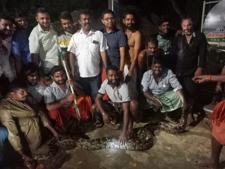 நிலையில் அந்தப் பகுதியில் இவ்வளவு பெரிய மலைப்பாம்பு கிடந்தது அப்பகுதி இளைஞர்கள் இடையே பெரிய அதிர்ச்சியை ஏற்படுத்தியுள்ளது மேலும் வனத்துறையால் பிடிக்கப்பட்ட இம்மலைப் பாம்பினை பொய்கை அணை அருகே உள்ள அடர்ந்த வனப்பகுதியில் விடப்பட்டது