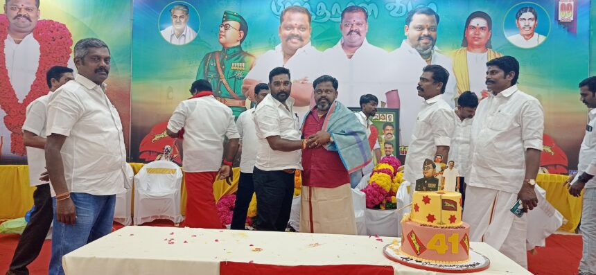 தேளி க. காளிமுத்து 41.வது பிறந்தநாள் விழாவை முன்னிட்டு பள்ளி குழந்தைகளுக்கு இனிப்பு மற்றும் அன்னதானம் வழங்கப்பட்டது. மேலும் ரத்ததான முகாம் மரக்கன்று நடும் விழா திருப்பூர் புறநகர் பகுதியில் காங்கேயம் தாராபுரம் பல்லடம் மடத்துக்குளம் அவிநாசி உடுமலை ஆகிய பகுதிகளுக்கு சுற்றுப்பயணமாக சென்று கட்சியின் கொடி ஏற்றி இனிப்புகள் வழங்கி அன்னதானம் வழங்கப்பட்டது. தனியார் திருமண மண்டபத்தில் நடைபெற்ற பிறந்த நாள் விழாவில்
