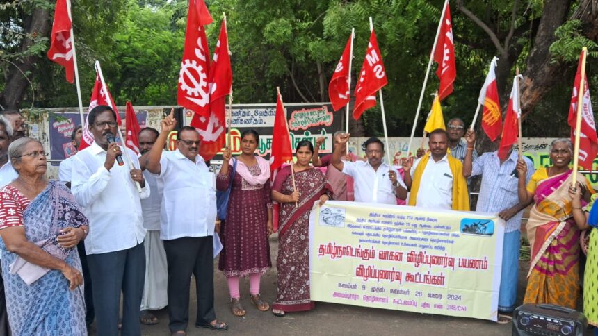 அமைப்பு சாரா தொழிலாளர் நல வாரியங்கள் மற்றும் தொழிலாளர் உரிமைகள் பாதுகாப்பு உள்பட பல்வேறு கோரிக்கைகளை வலியுறுத்தி வாகன விழிப்புணர்வு பயணம் மற்றும் கூட்டங்கள் தமிழ்நாடு முழுவதும் நடந்து வருகிறது. கன்னியாகுமரியில் தொடங்கிய இந்த உறுப்பினர் பயணம் சென்னையை அடைகிறது .இந்த வாகன விழிப்புணர்வு பயணக் கூட்டம் ஈரோடு காளைமாடு சிலை அருகே நடந்தது.