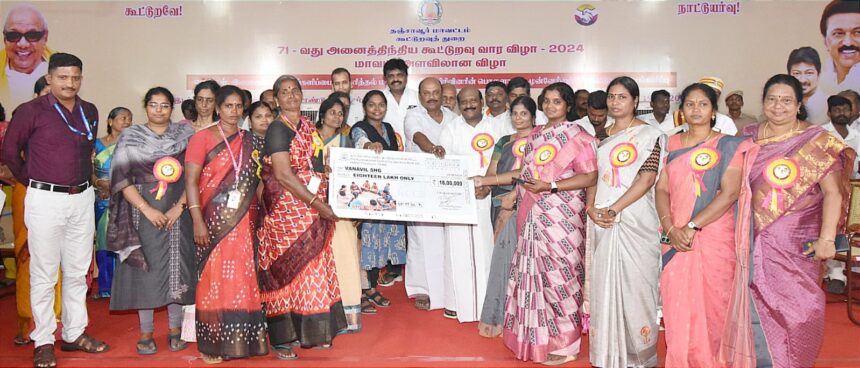 தஞ்சாவூர் மாநகராட்சி பேரறிஞர் அண்ணா நூற்றாண்டு அரங்கில் 71-வது அனைத்திந்திய கூட்டுறவு வார விழா மாவட்ட ஆட்சித்தலைவர் பிரியங்கா பங்கஜம் தலைமையில் உயர்கல்