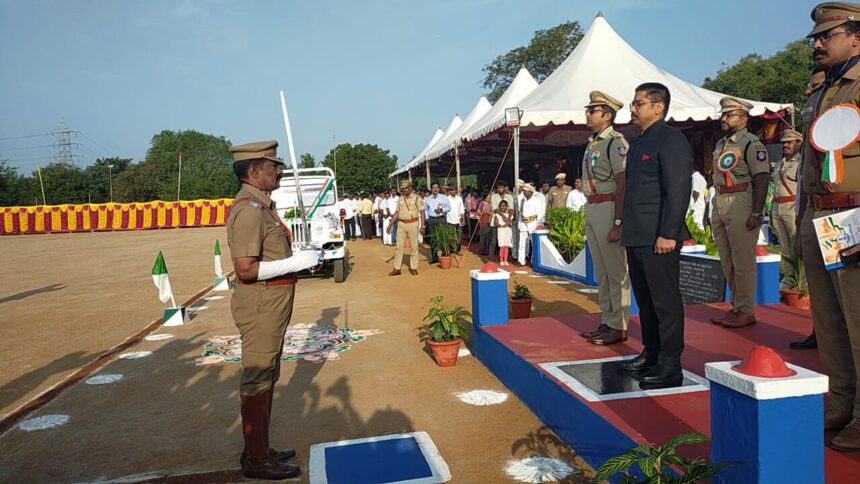 ராமநாதபுரம் மாவட்டம் ஆயுதப்படை மைதானத்தில் 76 ஆவது குடியரசு தின விழாவையொட்டி மாவட்ட ஆட்சித் தலைவர் சிம்ரன் ஜீத்சிங் காலோன் தேசியக்கொடி ஏற்றி வைத்து மரியாதை செலுத்தினார். உடன் மாவட்ட காவல் கண்காணிப்பாளர் சந்தீஷ் கொடி மரியாதை செலுத்தினார்.