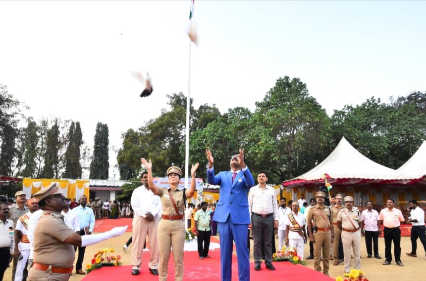 திருப்பத்தூர்:ஜன:27, திருப்பத்தூர் மாவட்டம் ஜோலையார்பேட்டை அடுத்த பாச்சல் கிராமத்தில் அமைந்துள்ள மாவட்ட ஆயுதப்படை மைதானத்தில் இந்திய நாட்டின் 76 வது குடியரசு தின விழாவை முன்னிட்டு மாவட்ட ஆட்சியர் க.தர்ப்பகராஜ் இ.ஆ.ப., தேசிய கொடியை ஏற்றி வைத்து மரியாதை செலுத்தினார்.