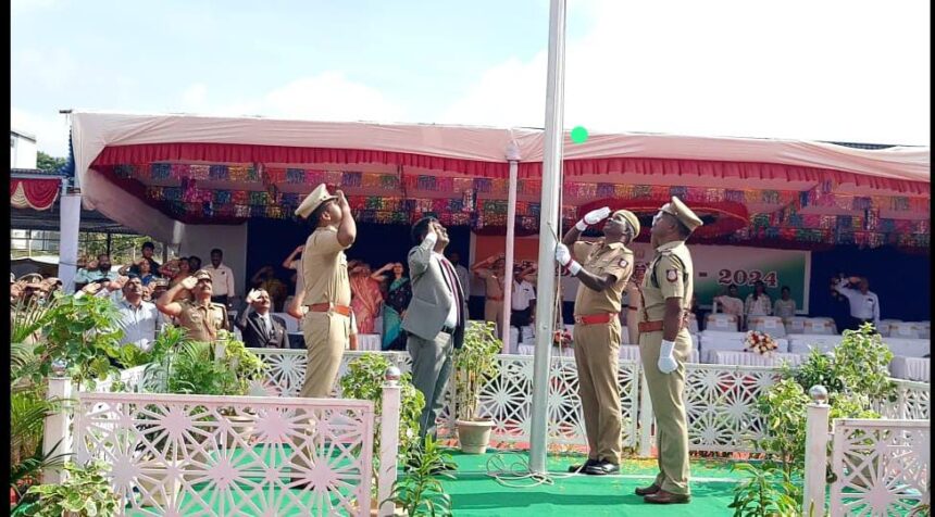 மாவட்ட கலெக்டர் தா.கிறிஸ்துராஜ் தேசியக் கொடியை ஏற்றிவைத்து போலீசாரின் அணிவகுப்பு மரியாதையை ஏற்றுக் கொண்டாா். தொடா்ந்து, சமாதானத்தை வலியுறுத்தும் வகையில் வெண் புறாக்களையும், மூவா்ண பலூன்களையும் பறக்கவிட்டாா். இதையடுத்து, சுதந்திரப் போராட்ட தியாகிகளுக்கு பொன்னாடை அணிவித்து கவுரவப்படுத்தினார். பின்னர் மாநகர மற்றும் மாவட்ட காவல் துறையில் சிறப்பாகப் பணியாற்றிய 17 காவலா்களுக்கு பதக்கம் மற்றும் சான்றிதழ்கள், சிறப்பாக பணிபுரிந்த 89 அரசு அலுவலா்களுக்கு பாராட்டுச் சான்றிதழ்களை அவா் வழங்கினாா்.