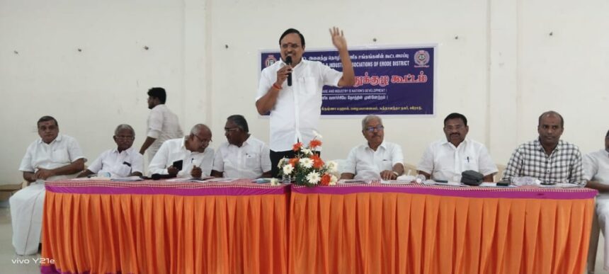 ஈரோடு மாவட்ட அனைத்து தொழில் வணிக சங்கங்களின் கூட்டமைப்பின் பொதுக்குழு கூட்டம் ஈரோடு பழையபாளையம் கிருஷ்ணா மகாலில் தலைவர் ராஜமாணிக்கம் தலைமையில் நடந்தது துணைத் தலைவர் சந்திரசேகரன் வரவேற்றார் பொது செயலாளர் ரவிச்சந்திரன் ஆண்டறிக்கை வாசித்தார் பொருளாளர் முருகானந்தம் நிதிநிலை அறிக்கை வாசித்தார் கௌரவ உறுப்பினர்களும் மற்ற பொறுப்பாளர்களும் கூட்டத்தில் கலந்து கொண்டனர் பொது செயலாளர் ரவிச்சந்திரன் நன்றி கூறினார்