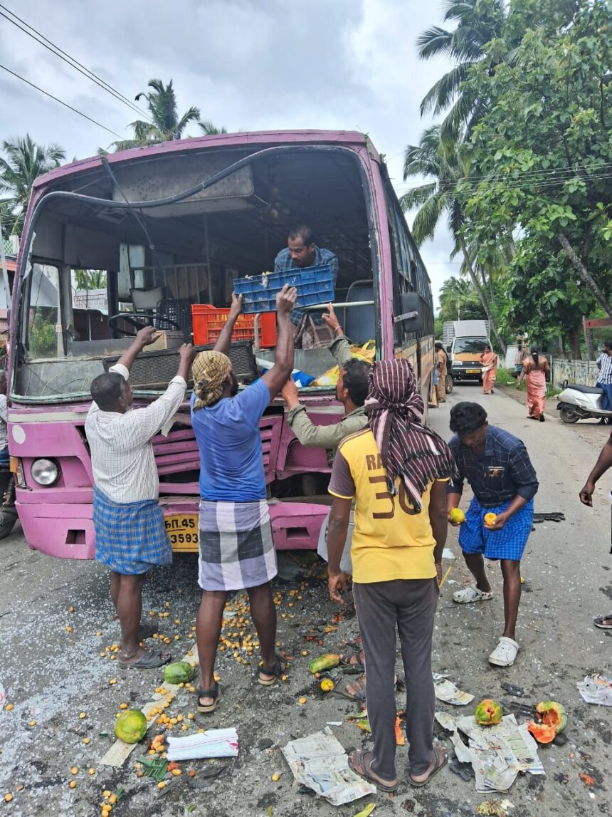 கன்னியாகுமரி மாவட்டம் பூதப்பாண்டி அடுத்த நன்றிக்குழி அருகே சாலையில் திடீரென வெள்ளாடு ஒன்று சாலையை  கடக்க முற்பட்டபோது அவ்வழியாக  பழங்களை ஏற்றி வந்த லோடு ஆட்டோ ஓட்டுநர்  ஆட்டின் உயிரை காப்பாற்ற முற்பட்ட நிலையில் பிரேக் பிடித்து  வண்டியை நிறுத்தினார். அந்த சமயம்  பின்னால் வந்த அரசு பேருந்து திடீரென சாலையின் நடுவில் நின்ற லோடு ஆட்டோ மீது மோதியதும் ஓட்டுநர்  பேருந்தை நிறுத்தினார். இதனால் பெரும் அசம்பாவிதம் தவிர்க்கப்பட்டது. மேலும்இந்த விபத்தில் அரசு பேருந்தின் முன்பக்க கண்ணாடி முற்றிலும் உடைந்து விழுந்தது. இதனால் லோடு ஆட்டோவில் இருந்த காய்கனிகள் அனைத்தும் சாலையில் சிதறி ஓடியது இந்த விபத்தில் ஆடு உட்பட யாருக்கும் எந்த காயமும் ஏற்படவில்லை தற்போது அந்த சிசிடிவி கட்சியானது சமூக வலைதளங்களில் வைரலாக பரவி வருகிறது. ஆட்டை காப்பாற்ற முயற்சித்து முடிவில் நஷ்டப்பட்ட  லோடு ஆட்டோ ஓட்டுனரை  பொதுமக்கள் பாராட்டி ஆறுதல்  தெரிவித்தனர்.