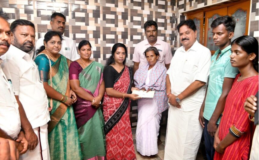அதனைத்தொடர்ந்து, மாவட்ட ஆட்சித்தலைவர் அவர்கள், பர்கூர் சட்டமன்ற உறுப்பினர் ஆகியோர் லாரி ஓட்டுநரின் குடும்பத்தினருக்கு ஆறுதல் கூறி, அவரது மனைவி .செவ்வந்தி அவர்களிடம் முதலமைச்சரின் பொது நிவாரண நிதியிலிருந்து ரூ.3 இலட்சத்திற்கான காசோலையை வழங்கினார்கள். மறைந்த முருகன் அவர்களுக்கு திவ்யஸ்ரீ என்கிற மகளும், மேகன் என்ற மகனும் உள்ளனர்.