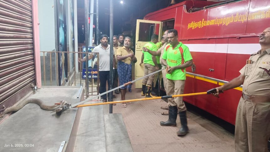 இது குறித்து உடனடியாக குலசேகரம் தீயணைப்பு நிலையத்திற்கு தகவல் தெரிவித்தனர். அதன்பேரில் தீயணைப்பு நிலைய வீரர்கள் சம்பந்தப்பட்ட இடத்திற்கு விரைந்து சென்று, பின்னர் ஹோட்டலின் ஷட்டரிலிருந்த கொடிய விஷம் கொண்ட நாகப்பாம்பு ஒன்றை பிடித்தனர். பின்னர் பாம்பை குலசேகரம் வனத்துறையிடம் ஒப்படைத்தனர். இந்த சம்பவம் அப்பகுதியில் சிறிது பரபரப்பை ஏற்படுத்தியது.