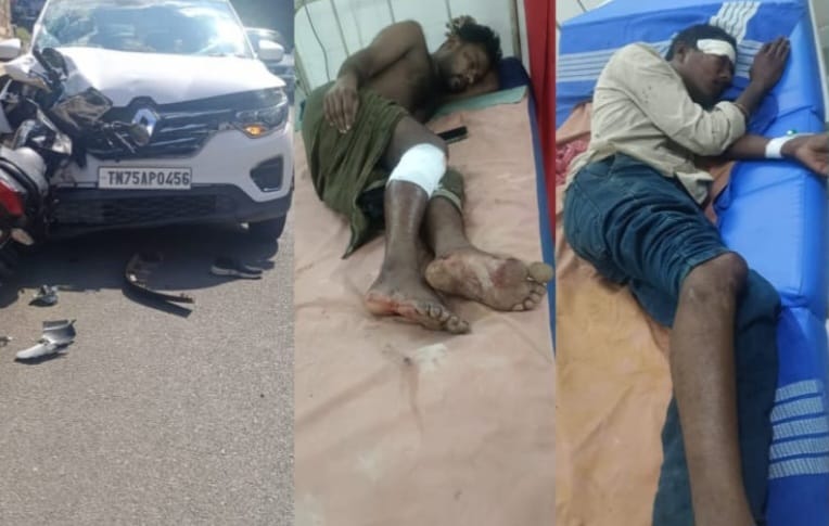 விஜயக்குமார் மற்றும் பத்துகாணி பகுதியை சேர்ந்த சஜி ஆகியோர் இருசக்கர வாகனத்தில் சென்று கொண்டிருந்தனர். அப்போது விபத்து நடந்த பகுதியில் சாலை ஓரத்தில் ஒரு வாகனம் நிறுத்தி வைக்கப்பட்டிருந்தது. எதிரே ஒரு லாரி வந்து கொண்டிருந்தது லாரிக்கு பின்னால் ஒரு சொகுசு காரும் வந்து கொண்டிருந்தது. இச்சமயம் இளைஞர்கள் சாலை ஓரம் நிறுத்தி வைக்கப்பட்டு இருந்த வாகனத்தை கடந்து செல்லும் போது லாரிக்கு பின்னால் வந்த சொகுசு வாகனம் லாரியை முந்தி செல்வதற்காக வேகமாக முந்த முற்படும்போது இளைஞர்கள் வந்த வாகனத்தில் மோதியதில் மூவரும் தூக்கி வீசப்பட்டனர்.