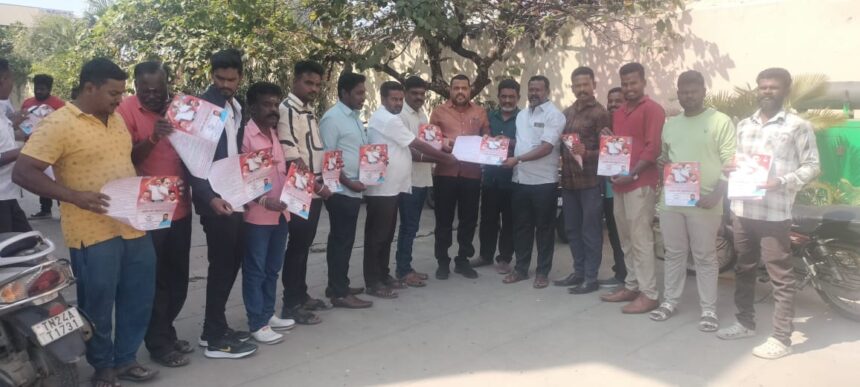 கிருஷ்ணகிரி,ஜன.31- விடுதலை சிறுத்தைகள் கட்சியின் தலைவரும் நாடாளுமன்ற உறுப்பினருமான தொல். திருமாவளவன் ஆணைக்கிணங்க கிருஷ்ணகிரி மைய மாவட்ட விடுதலைச் சிறுத்தைகள் கட்சி சார்பில் மாபெரும் கண்டன ஆர்ப்பாட்டம் வரும் 6-ஆம் தேதி நடைபெற உள்ளது. அதற்கான துண்டு பிரசுரங்களை
