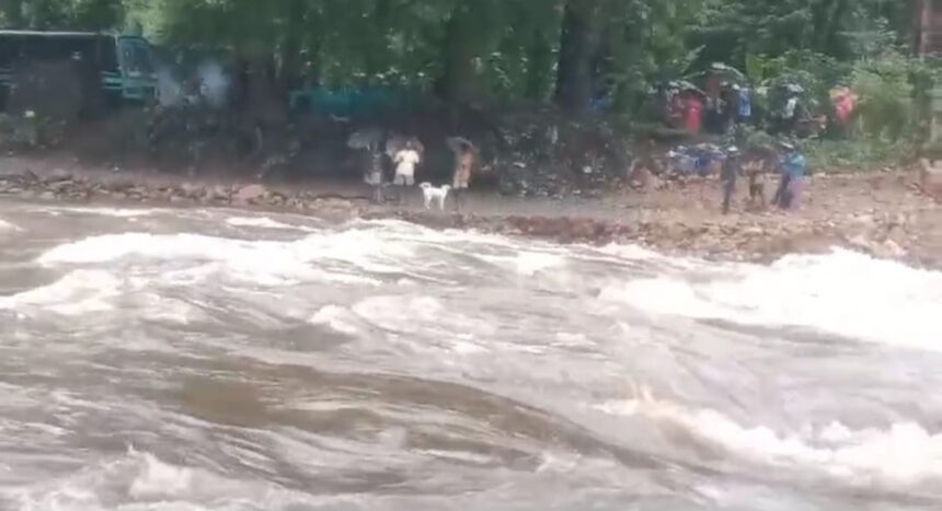 தற்காலிக பாலத்தை காட்டாற்று வெள்ளம் இழுத்துச் சென்றதால் குற்றியாருக்கு சென்ற பஸ் திரும்பி வெளியே வர முடியாத நிலை ஏற்பட்டது. கிழவி ஆறு, தச்சைமலை உள்பட 12 மலையோர கிராமங்களில் போக்குவரத்து பாதிக்கப்பட்டதால் பள்ளி மாணவ-மாணவிகள், தொழிலாளர்கள் கடும் அவதிக்கு ஆளாகியுள்ளனர்.