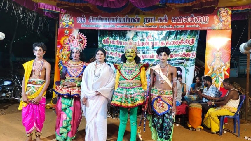 இந்த தொரு கூத்து நாடகத்தில் துரியோதனன், பீமன் வேடமணிந்து நாடக கலைஞர்கள் தத்ரூபமாக நடித்து அரங்கேற்றினர்.