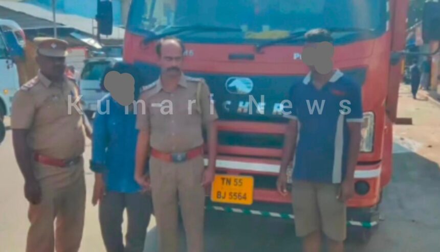அவரின் உத்தரவின் படி நேற்று களியக்காவிளை காவல் நிலைய ஆய்வாளர் பாலமுருகன் தலைமையில் போலீசார் வாகன சோதனையில் ஈடுபட்டு வந்தனர். அப்போது சந்தேகப்படும்படியாக வந்த மினி லாரியை நிறுத்தி சோதனை செய்ததில் கேரளாவில் இருந்து கோழி கழிவுகள் ஏற்றி வந்தது கண்டுபிடிக்கப்பட்டது. எனவே கோழி கழிவு எற்றிவந்த வாகனத்தை பறிமுதல் செய்து களியக்காவிளை காவல் நிலையத்தில் 123, 271,272, BNS ஆகிய பிரிவுகளின் கீழ் வழக்கு பதிவு செய்யப்பட்டது. மேலும் கோழி கழிவுகளை ஏற்றி வந்த இருவர் கைது செய்யப்பட்டுள்ளனர்.