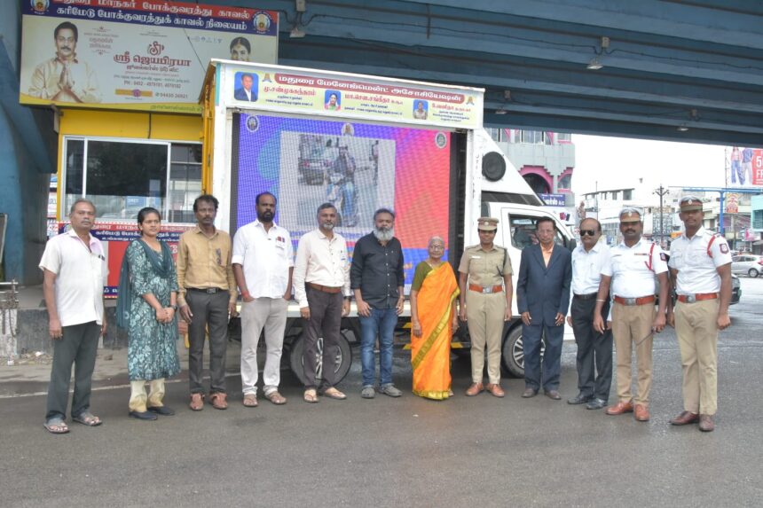 மதுரை மாநகரின்  மூன்று முக்கிய இடங்களில் விழிப்புணர்வு நடைபெற்றது. இதில் மதுரை மேனேஜ்மென்ட் அசோசியேசன் மற்றும் மதுரை மாநகர போக்குவரத்து துறை சார்பில் சார்பில் மதுரை காளவாசல் மற்றும் குரு தியேட்டர் ஆரப்பாளையம் பகுதிகளில் சாலை போக்குவரத்து பாதுகாப்பு விழிப்புணர்வு நிகழ்ச்சி நடைபெற்றது. இதனை தொடர்ந்து ஆனந்த் பள்ளியில் மாணவர்களுக்கு