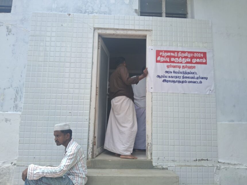 கீழக்கரை,ஜூன்.07 ஏர்வாடி தர்ஹா சந்தனக்கூடு திருவிழாவிற்கு வரும் பக்தர்களுக்கான சிறப்பு ஆரம்ப சுகாதார நிலையத்தில் மருந்து மற்றும் மாத்திரைகள் பற்றக்குறையால் நோயாளிகள் அவதிக்குள்ளாகி வருகின்றனர்.