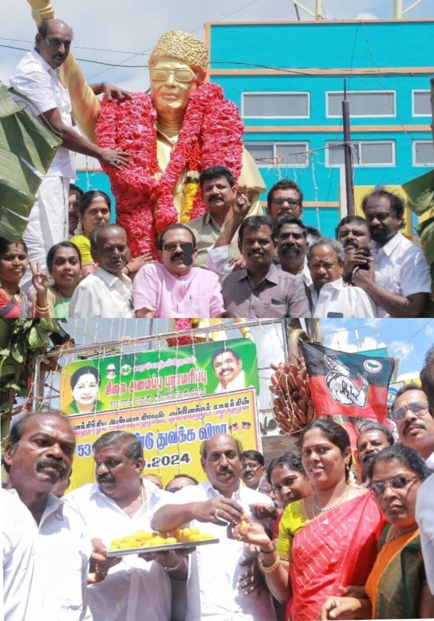 கன்னியாகுமரி மாவட்டம் நாகர்கோவில் வடசேரியில் அஇஅதிமுக – வின் 53-வது ஆண்டு துவக்க விழாவை முன்னிட்டு கழக பொது செயலாளர் எடப்பாடி பழனிச்சாமி உத்தரவின் பேரில் நேற்று நாகர்கோவில் வடசேரி சந்திப்பில் உள்ள அதிமுக நிறுவனர் தமிழக முன்னாள் முதலமைச்சருமான டாக்டர். எம்.ஜி. ஆர் அவர்களின் திருவுருவ சிலைக்கு அதிமுக குமரி மாவட்ட பொருப்பாளர் ஜாண் தங்கம் , மற்றும் அதிமுக வடக்கு மண்டல தலைவரும் நாகர்கோவில் மாநகராட்சி உறுப்பினருமான ஸ்ரீ லிஜா மற்றும் நாகர்கோவில் முன்னாள் சட்ட மன்ற உறுப்பினர் நாஞ்சில் முருகேசன் மாலை அணிவித்து மலர் தூவி மரியாதை செலுத்தினார். தொண்டர்களுக்கும் பொது மக்களுக்கும் இனிப்புகள் வழங்கினர். வடக்கு மண்டலம் சார்பாக ஏழை எளிய மக்களுக்கு சுமார் 2000 -க்கும் மேற்பட்டவர்களுக்கு இலவச வேட்டி , சேலை வழங்கினர்.இந்நிகழ்ச்சியில் ஆயிரக்கணக்கான அதிமுக தொண்டர்கள் மற்றும் கட்சி நிர்வாகிகள் பொதுமக்கள் ஏராளமாக கலந்து கொண்டனர். தொண்டர்கள் அனைவரையும் வரவேற்க்கும் விதமாக சாலையோரம் அதிமுக கட்சி கொடிகள் நடப்பட்டு, மேள ,தாளம், முழங்க இசை கச்சேரிகளும் , வாணவேடிக்கைகள் விடப்பட்டது. இதனால் அப்பகுதி முழுவதும் விழாக்கோலம் போன்று காட்சி அளித்தது. காண்போரை கவரும் விதத்தில் அமைந்திருந்தது. தாகம் தனித்த பொதுமக்களுக்கு குடிநீர் பாட்டில்கள் விநியோகிக்கப்பட்டன. குமரி மாவட்ட காவல் கண்காணிப்பாளர் உத்தரவின் பேரில் சாலையில் போக்கு வரத்து நெரிசல் ஏற்ப்படாத வண்ணம் வடசேரி காவல் நிலைய ஆய்வாளர் ஜெயலெட்சுமி தலைமையில் போலீசார், மற்றும் போக்குவரத்து பிரிவு காவலர்கள் சாலையில் போக்குவரத்து நெரிசல் இன்றி வாகனங்கள் செல்லும் விதத்தில் போக்குவரத்தினை சிறப்பான முறையில் செயல்படுத்தினர்.