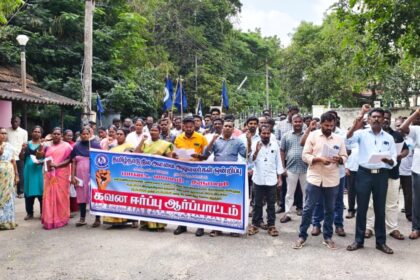 மயிலாடுதுறை மாவட்டம் குத்தாலம் அருகே தேரழுந்தூர் அமைந்துள்ளது. கவிச்சக்கரவர்த்தி கம்பர் பிறந்த இந்த ஊரில், 2ஆயிரம் ஆண்டுகள் பழைமை வாய்ந்த, ஆமருவியப்பன் ஆலயம் அமைந்துள்ளது. 108 வைணவ திவ்ய தேசங்களுல், 23வது தேசமான இங்கு, மூலவர் தேவராஜன், 13அடி உயர சாளக்கிராம கல்லிலான் ஆனவர். ஆழ்வார்களால் பாடல்பெற்ற இந்த ஆலயத்தில், பிரம்மோற்சவம் கடந்த 11ம் தேதி கொடியேற்றத்துடன் துவங்கி நடைபெற்று வருகின்றது. விழாவின் முக்கிய நிகழ்ச்சியான திருத்தேரோட்டம் இன்று நடைபெற்றது. பெருமாள் மற்றும் தாயார் ஆகியோர் திருத்தேரில் எழுந்தருளினர். திரளான பக்தர்கள் தேரை வடம் பிடித்து இழுத்தனர். நான்குரத வீதிகள் வழியே திருத்தேரோட்டம் நடைபெற்றது.