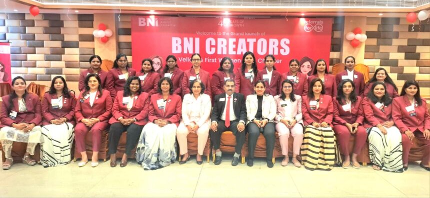 வேலூர் மாவட்டம் ஹோட்டல் கண்ணா ஃபீஸ்ட் வேலூரில் பிஎன்ஐ கிரியேட்டர்ஸ் ஃபர்ஸ்ட் உமென் ஒன்லி சேப்டர் ஆப் பிஎன்ஐ வேலூர் சார்பில் நடைபெற்ற நிகழ்ச்சியில் சிறப்பு அழைப்பாளர்கள் வேலூர் மாநகராட்சி மேயர் சுஜாதா ஆனந்தகுமார் வேலூர் மாநகராட்சி ஆணையர் ஜானகி ரவீந்திரன் ஆகியோர் கலந்து கொண்டு சிறப்புரையாற்றினர் உடன் பி என் ஐ நிர்வாக இயக்குனர்கள் தீபக், சுனிதா தீபக், மற்றும் உறுப்பினர்கள் பலர் கலந்து கொண்டனர்