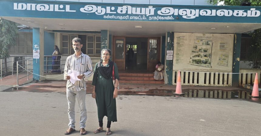 கன்னியாகுமரி மாவட்டம் குளச்சல் காவல் நிலைய எல்லைக்கு உட்பட்ட கோணங்காடு பகுதியில் வசித்து வருபவர் லாரன்ஸ் கென்னடி. இவர் தமிழ்நாடு அரசு போக்குவரத்து கழகம் குளச்சல் பணிமனையில் நடத்துனராக பணிபுரிந்து வருகிறார். இவருக்கு மனைவி மற்றும் இரண்டு பள்ளி செல்லும் குழந்தைகள் உள்ளனர். இவர்களது வீட்டின் அருகில் உள்ள ஸ்மைலின் நிதிஷ் என்பவர் லாரன்ஸ் கென்னடியை கடந்த சில நாட்களுக்கு முன்னர் கொடூரமாக தாக்கியதில், தோள்பட்டை எலும்பு, நெற்றி பட்டை மற்றும் மூக்கு பகுதி எலும்புகள் உடைந்து நாகர்கோவிலில் உள்ள தனியார் மருத்துவமனையில் சிகிச்சை பெற்று வந்தார். இது சம்பந்தமாக வழக்கு பதிவு செய்த பின்னரும் குற்றவாளியின் மிரட்டல் தொடர்ந்ததால் குற்றவாளியை கைது செய்ய வலியுறுத்தி லாரன்ஸ் கென்னடியின் மனைவி மாவட்ட காவல்துறை கண்காணிப்பாளரிடம் முறையிட்டதன் பேரில் குற்றவாளியை கைது செய்து சிறையில் அடைத்தனர். தற்போது குற்றவாளி ஸ்மைலின் நிதிஷ் காவல் நிலையத்தில் கையெழுத்து போட்டு வருகிறார். இந்த நிலையில், சிலர் சேர்ந்து லாரன்ஸ் கென்னடி, ஸ்மைல் நிதிஷ் மீது கொடுத்திருந்த வழக்கை பின்வலிக்க வேண்டும், இல்லையென்றால் உங்கள் வீட்டிற்கு செல்லும் வழிப் பாதையை அடைப்போம் என்றும் மிரட்டலும் விடுத்து வந்தனர். இந்த நிலையில் 40 ஆண்டுகளுக்கு மேலாக பயன்படுத்தப்பட்டுவரும் வழிப்பாதை அடைக்கப்பட்டால், வீட்டைவிட்டு வெளியே செல்வதற்கோ, உள்ளே வருவதற்கோ இயலாத சூழ்நிலை ஏற்படும். பிள்ளைகளுக்கு பாடசாலை செல்வதற்கும் இயலாத சூழ்நிலை ஏற்படும் என்பதை உணர்ந்து இரணியல் நீதிமன்றத்தில் வழக்கு பதிவு செய்து வழக்கு நிலுவையில் இருந்து வருகிறது. இந்த நிலையில் கடந்த சில தினங்களுக்கு முன்னர், தேவசகாயம் மேற்படி வழி பாதையை சேதப்படுத்தி மிரட்டியது சம்பந்தமாக குளச்சல் காவல் நிலையத்தில் புகார் கொடுக்கப்பட்டுள்ளது. இந்த நிலையில் குளச்சல் காவல் நிலையத்தினர் எந்தவித நடவடிக்கையும் மேற்கொள்ளாமல் இருந்து வருகின்றனர். இந்நிலையில் லாரன்ஸ் கென்னடி பணிக்கு சென்ற நேரத்தை பயன்படுத்தி, லாரன்ஸ் கென்னடியின் வீட்டிற்கு செல்லும் வழிப் பாதையை கேட் போட்டு அடைத்துள்ளார். இது குறித்து காவல்துறைக்கு தகவல் கொடுத்தும் எந்த விதமான நடவடிக்கையும் எடுக்கப்படவில்லை. வழி பாதையில் போடப்பட்டுக்கொண்டிருக்கும் கேட் பூட்டு போட்டு அடைக்கப்பட்டால், வீட்டில் உள்ள எவரும் வெளியே வரவும், வெளியில் இருப்பவர்கள் உள்ளே செல்வதற்கோ இயலாத அவல நிலை ஏற்படும். எனவே காவல்துறையினர், வருவாய்த்துறை அதிகாரிகள் ஆகியோர் உடனடியாக நடவடிக்கை எடுக்க வேண்டும். இவ்வாறு அந்த மனுவில் கூறப்பட்டுள்ளது.