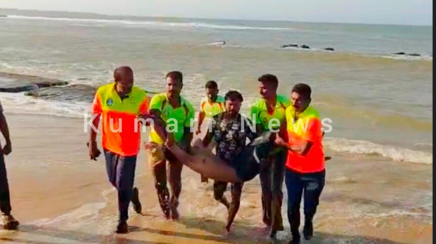 இதில், கடலுக்குள் தத்தளித்துக் கொண்டிருந்த ஆந்திரத்தைச் சேர்ந்த மாணவர் தருண் (18) என்பவரை பெருமாள்புரம் அகதிகள் முகாமைச் சேர்ந்த சத்தியராஜ் என்ற இளைஞர் தைரியமாக கடலுக்குள் குதித்து கரைக்கு இழுத்து வந்தார். தொடர்ந்து இம்மாணவருக்கு முதலுதவி சிகிச்சையும் அளித்துள்ளார். இதில் உயிர் பிழைத்த மாணவர் தருண் ஆசாரிப்பள்ளம் அரசு மருத்துவக்கல்லூரியில் அனுமதிக்கப்பட்டு சிகிச்சை பெற்று வருகிறார்.